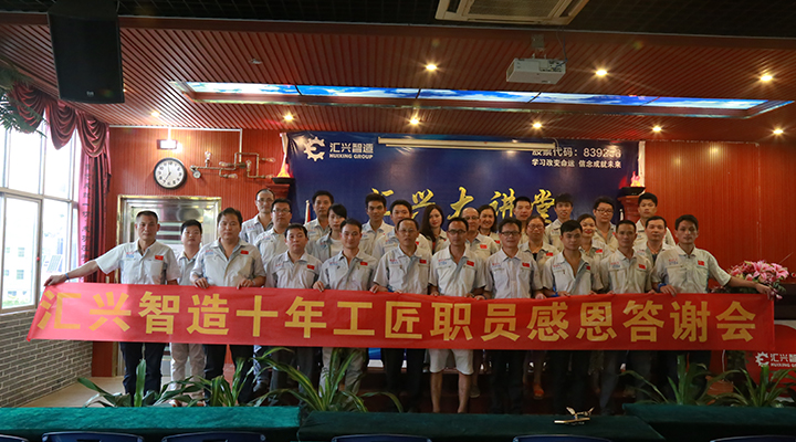 2017年8月6日,廣東匯興精工智造股份有限公司(股票代碼:839258)“十年工匠職員感恩答謝會(huì)”在匯興培訓(xùn)學(xué)校圓滿(mǎn)召開(kāi)。鐘輝、辛曼玉、黃艷、鄧高全、彭大海等高層以及為匯興智造服務(wù)超過(guò)10年業(yè)內(nèi)經(jīng)驗(yàn)豐富的職員代表參加了本次感恩會(huì),精密零部件事業(yè)部銷(xiāo)售副總監(jiān)楊思主持本次會(huì)議。