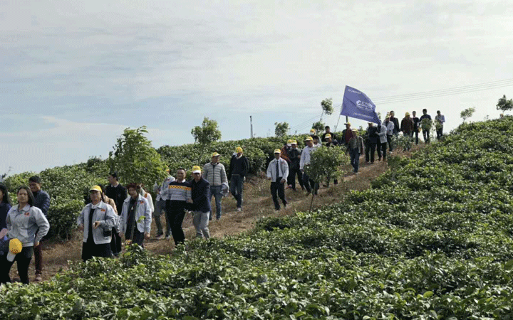英德古稱英州,以生產紅茶著稱于世,是中國著名茶鄉。旅途第一站:英德茶園。茶園占地面積極廣,陽光里,微風拂過,一片碧波蕩漾,空氣中彌漫著淡淡的清香?!皦粝胫谩钡膱F隊成員們行走其間,心曠神怡。茶園主人耐心地給大伙兒介紹茶葉的制作過程:采摘、萎凋、揉捻、發酵、干燥等。如今的茶葉不再是純手工制作,每一個環節都由相應的設備操作??吹綑C器設備,大伙兒就忍不住向茶園主人獻計:建立一套自動化流水生產線。匯興智造的精英們啊,走到哪兒,都能發掘商機,旅途也是夢想的征程,不忘初心,攜夢前行。