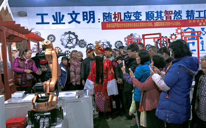 活動現(xiàn)場,匯興智造黨支部、工會委員會、團工委等工作人員裝扮成財神為老人送上新年利是,陪伴老人一同參觀匯興智造工業(yè)4.0智能裝備體驗館,體驗智能制造“隨機應(yīng)變”“順其智然”改變傳統(tǒng)生產(chǎn)的魅力;觀看由匯興智造員工自編自演的京劇舞蹈廠歌等文藝節(jié)目,感受匯興智造“用情做人、用心做事”,“敬天愛人,孝道為先”的文化力量。