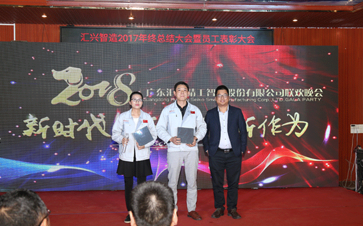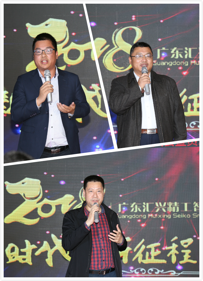 東莞證券何總、大信會計事務所黃總、華商律師事務所姜總等嘉賓致辭,均表示在2017年與匯興智造合作得相當愉快,同賀匯興智造取得驕人成績,并表達了在2018與匯興智造繼續合作的愿望,共祝匯興智造再創輝煌。