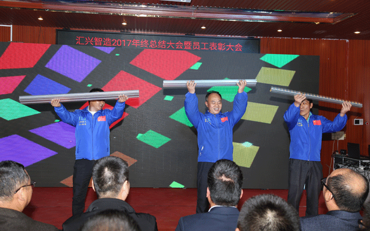 匯興智造鐘輝董事長隨后致辭,回顧了匯興智造2017的精彩,也描繪了匯興智造2018的美好,向給予匯興智造關心、幫助、支持的各級政府領導、社會各界友人、合作伙伴、匯興全體員工表達了真摯的謝意和美好的祝福。