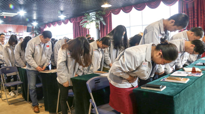 全體員工向企業(yè)“孝道、商道、人道”行三鞠躬禮