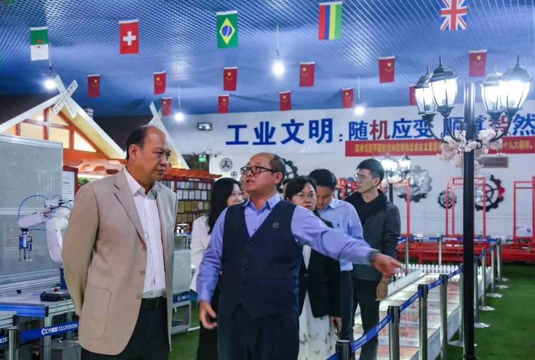 楊曉棠常委一行參觀智能制造工業(yè)4.0體驗館、黨建陣地、社會主義核心價值觀宣傳長廊、中德智能裝備研究院等。董事長鐘輝介紹了公司發(fā)展概況,并匯報了公司增資擴產、項目用地進展等企業(yè)運營情況。