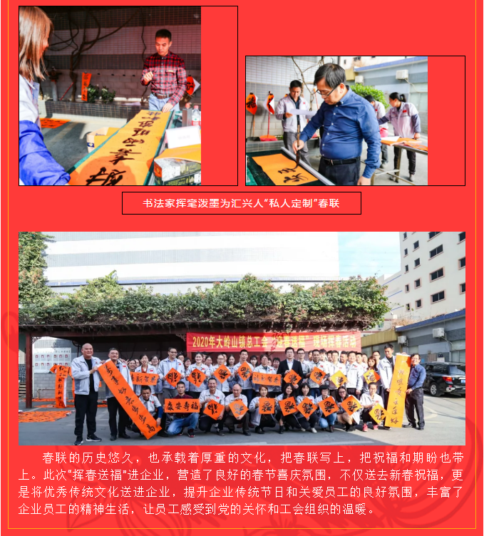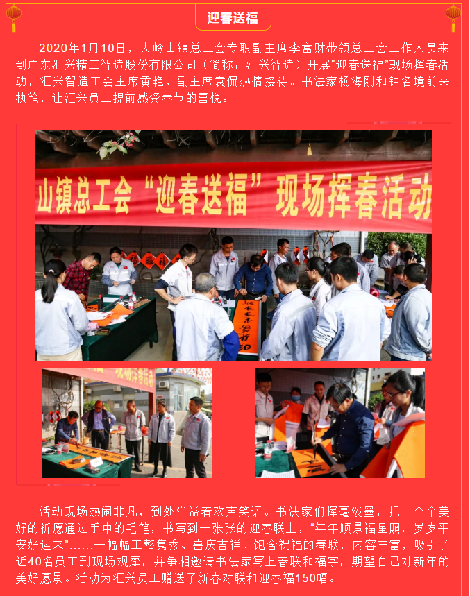 翰墨飄香送春聯(lián),文化進企暖人心——鎮(zhèn)總工會來匯興開展“迎春送福”現(xiàn)場揮春活動