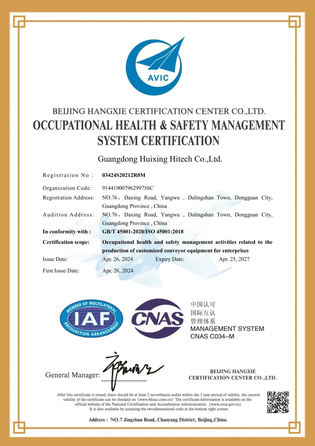 “做受尊敬好人,造受尊敬的產(chǎn)品,辦受尊敬的企業(yè),建受尊敬的平臺(tái)”是匯興智造的企業(yè)使命。4月7-9日,廣東匯興精工智造股份有限公司通過北京航協(xié)認(rèn)證中心審核組進(jìn)行為期3天的ISO14001環(huán)境管理體系和ISO45001職業(yè)健康安全管理體系認(rèn)證,經(jīng)過主管機(jī)構(gòu)全面、嚴(yán)格、細(xì)致的審核,公司各項(xiàng)審核項(xiàng)目均已達(dá)到ISO14001環(huán)境管理體系和ISO45001職業(yè)健康安全管理體系標(biāo)準(zhǔn)要求,并于2024年4月26日正式獲得ISO14001環(huán)境管理體系和ISO45001職業(yè)健康安全管理體系認(rèn)證證書。